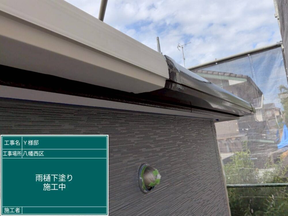雨樋も紫外線や雨風にさらされて劣化します。雨漏りの原因にも部分ですので、しっかりと塗装いたします。雨樋下塗り
