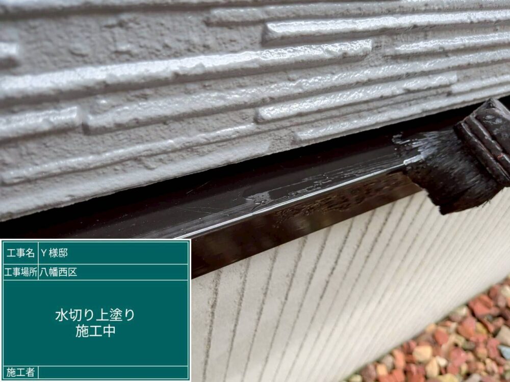 水切りは土台に水が入るのを防ぐ重要な役割があり劣化がお家の基礎を痛めてしまう事に直結しますので塗装でメンテナンスをいたします。水切り中塗り