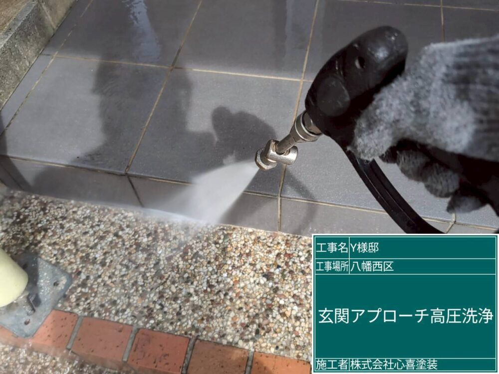 業務用の高圧洗浄機を使用して、汚れやごみを洗い流します。玄関高圧洗浄