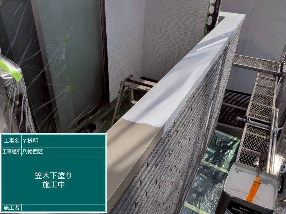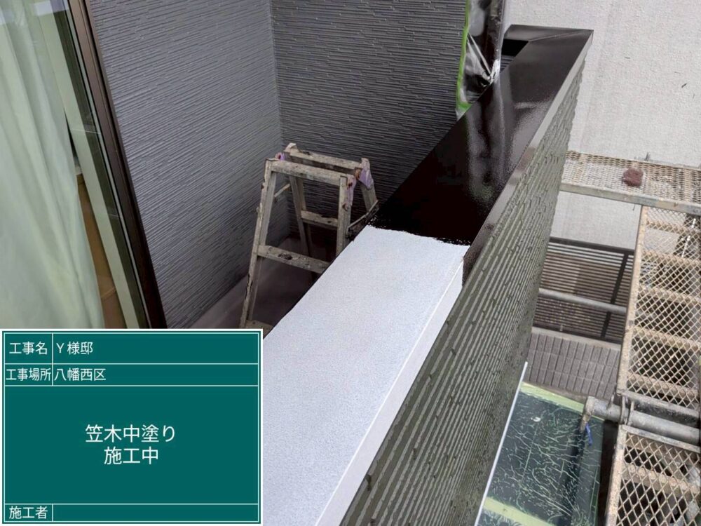 付帯部は太陽光の紫外線や熱、雨などで劣化していきます。新しいものに交換すると高額な費用がかかってしまうため、塗装し直すことによって安価ですみ長持ちさせることができます。笠木中塗り
