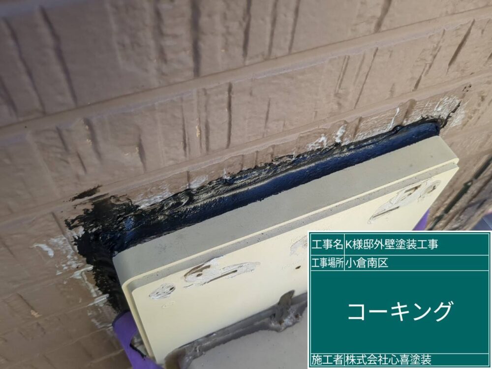 コーキング補修が不十分だと、目地から水分が侵入してしまい雨漏りの原因になります。しっかりと打ち終わりました。