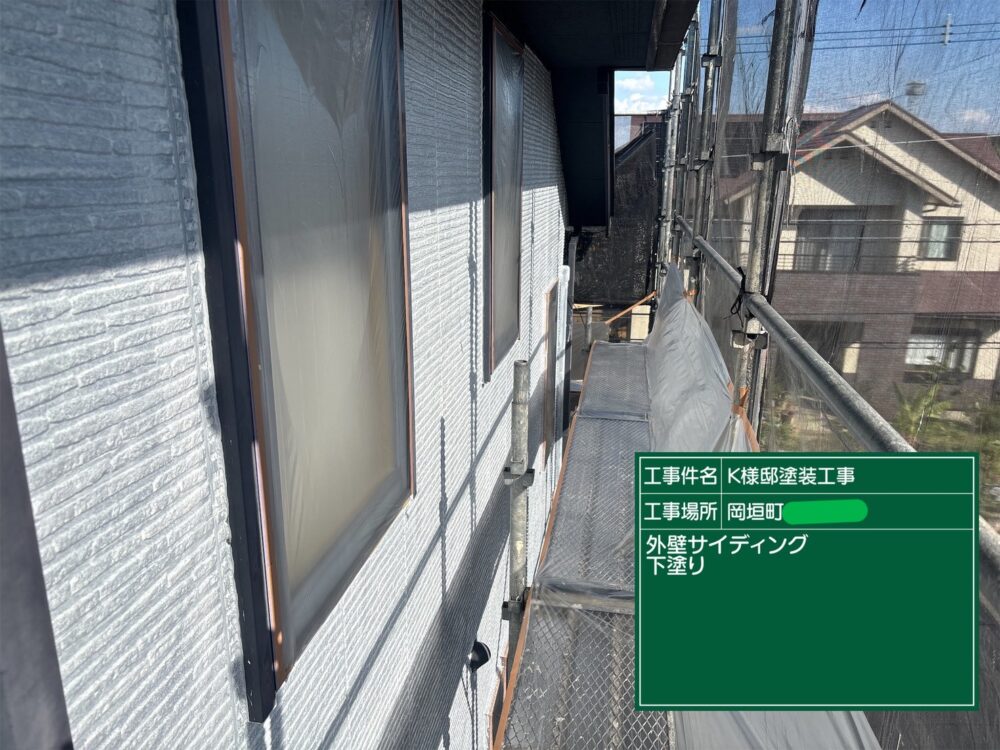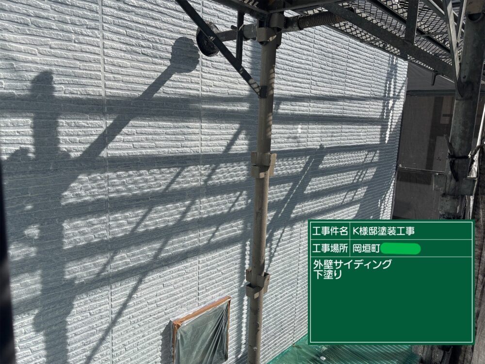 旧塗膜と次回塗る中塗りとの密着力や隠蔽性を高める為、中塗り材を塗装する前に下塗り材を塗ります。