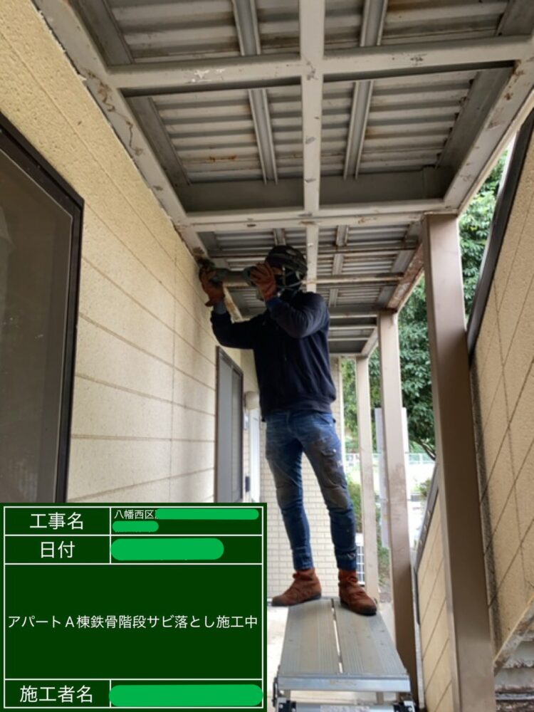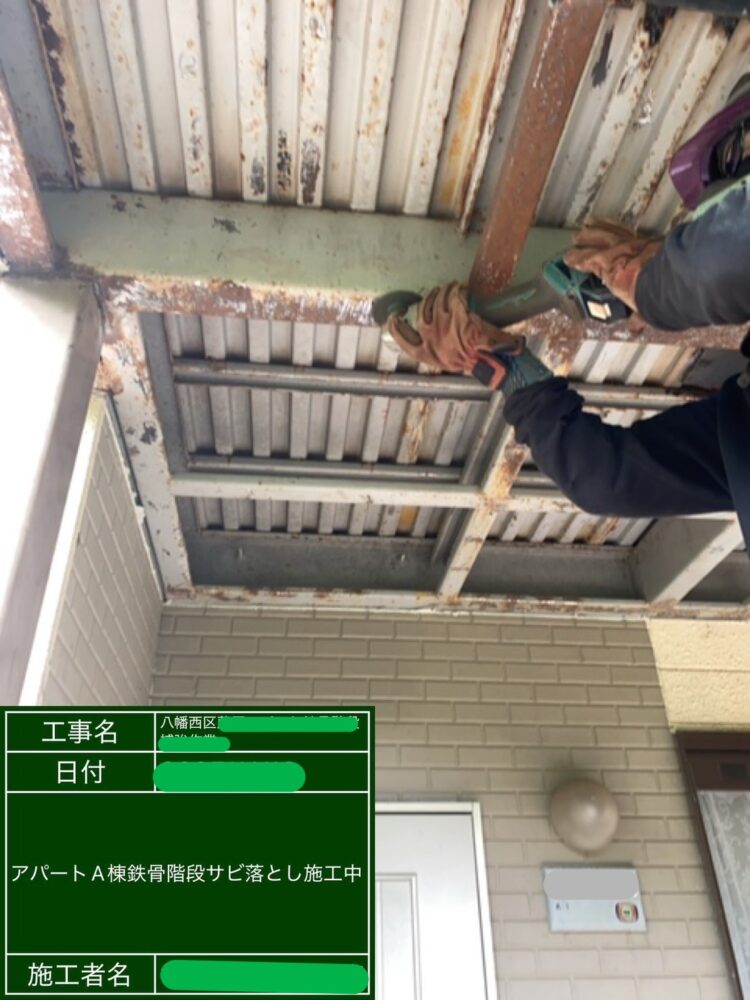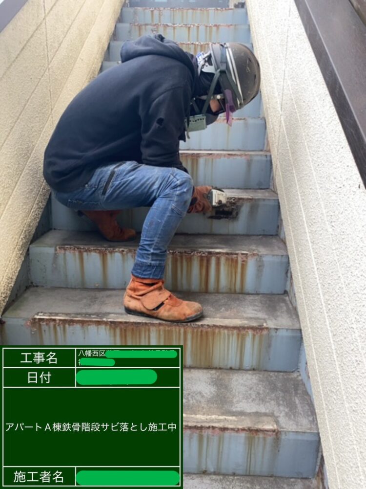 A棟 鉄骨階段サビ落とし