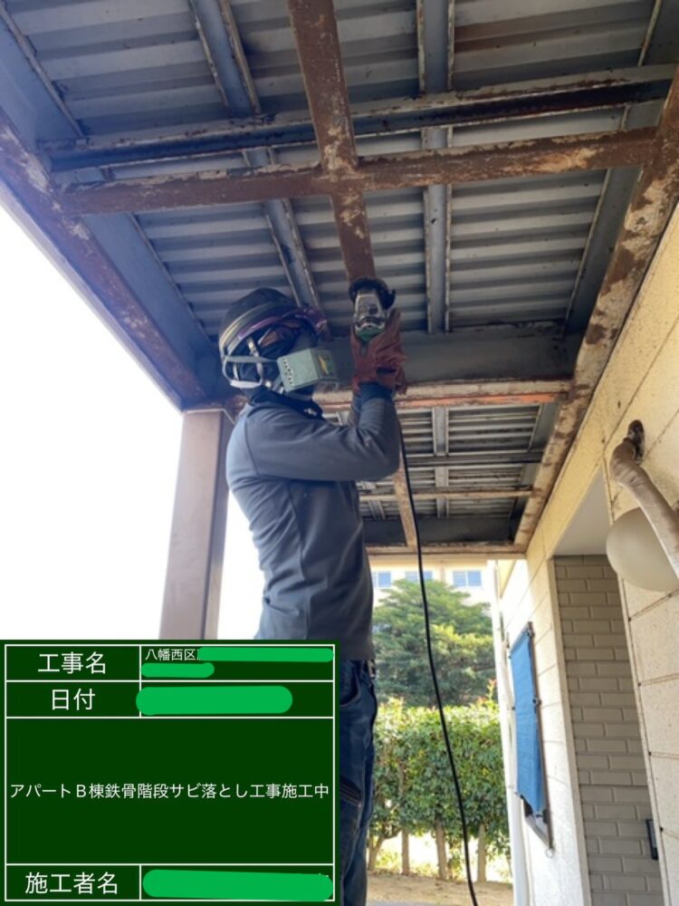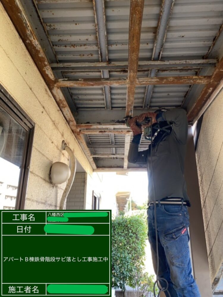 B棟 鉄骨階段サビ落とし